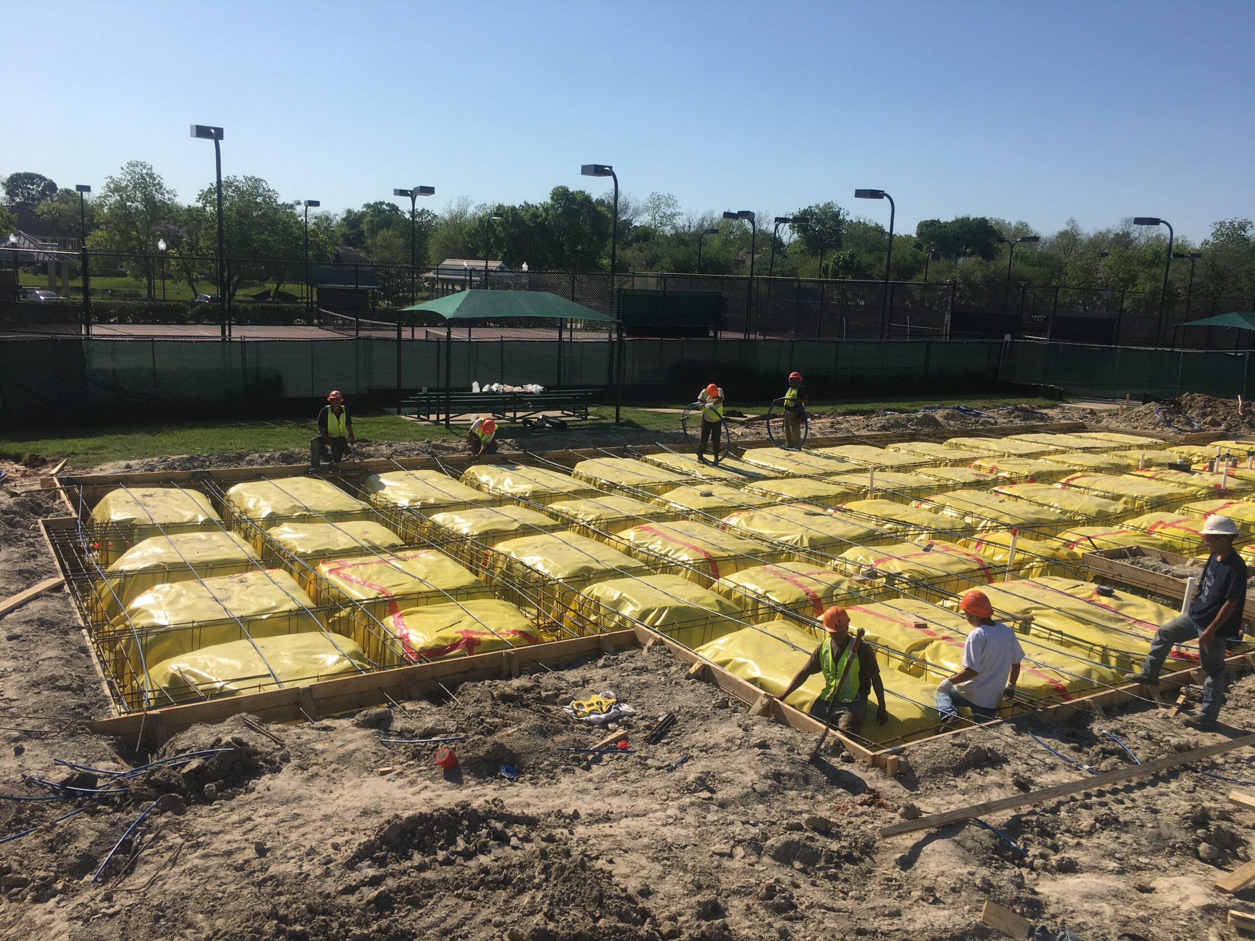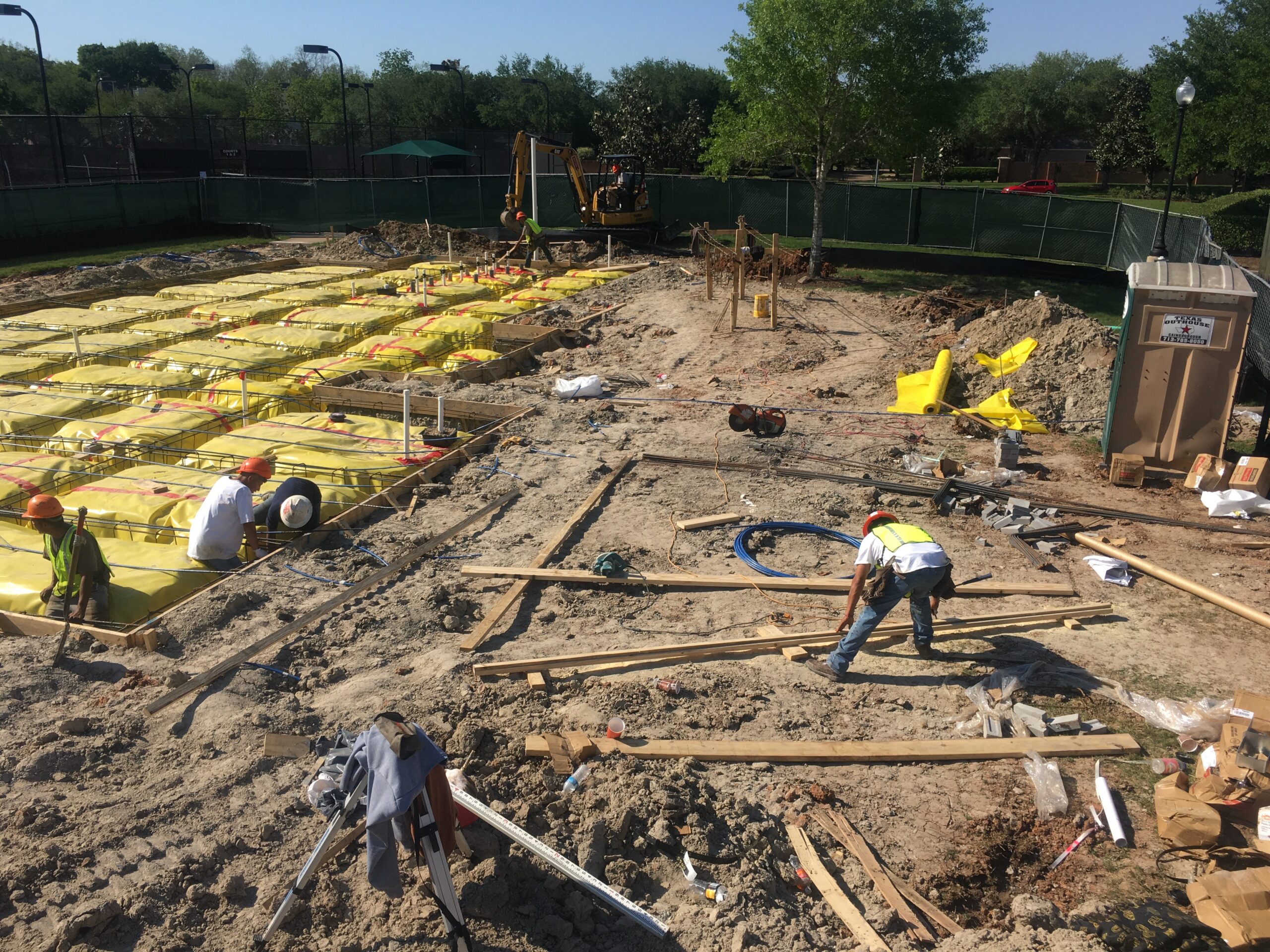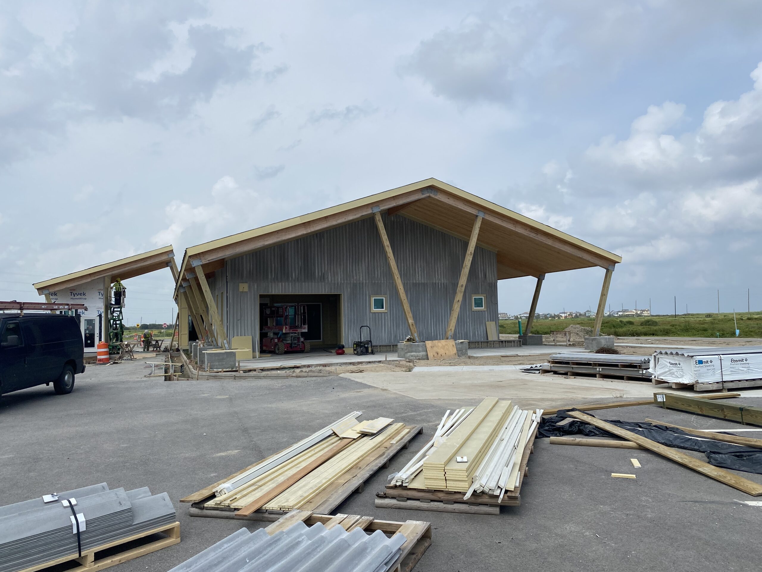A multi-use complex for retail and business, built with flood-resistant foundations and modern design aesthetics.